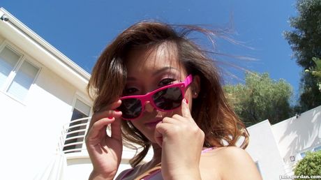 Brazzers Network: Deluxe asian bombshell Lana Violet in fancy bikini exhibits her butt and sissy near the pool